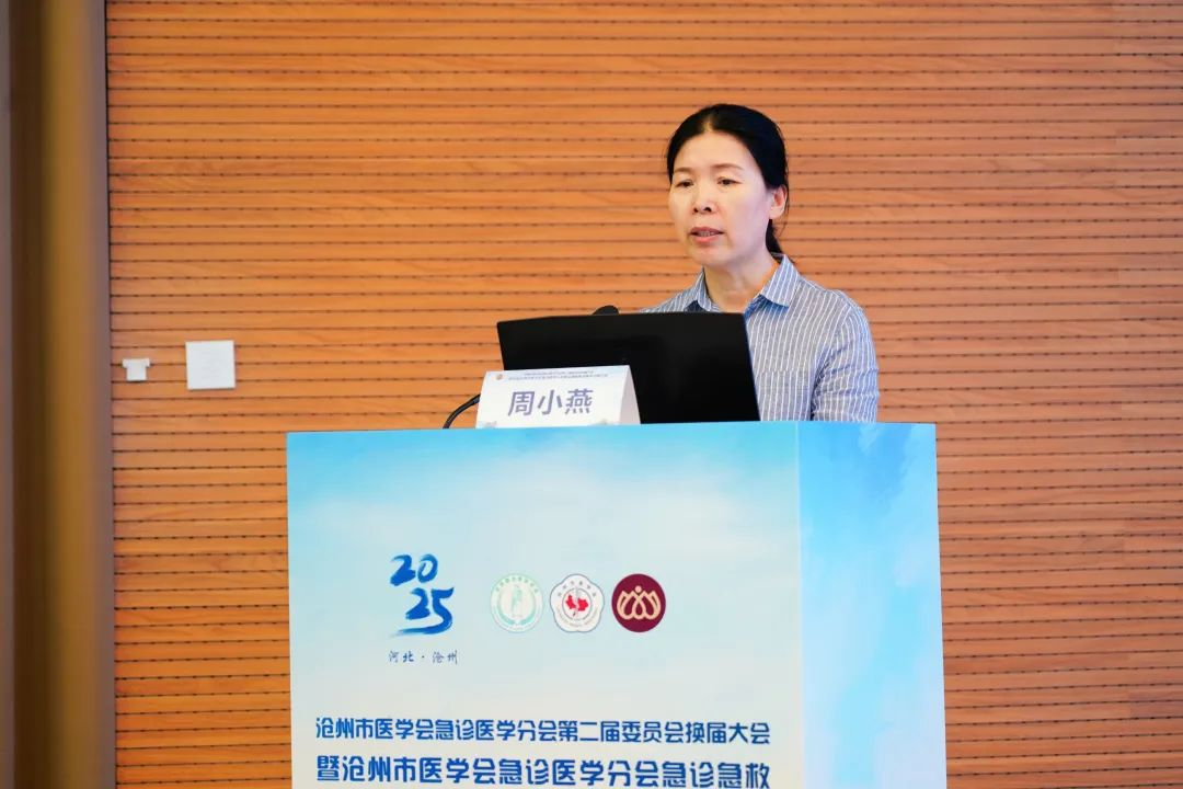 ▲沧州市医师协会急诊医师分会主任委员、沧州中西医结合医院副院长周小燕教授做专题报告